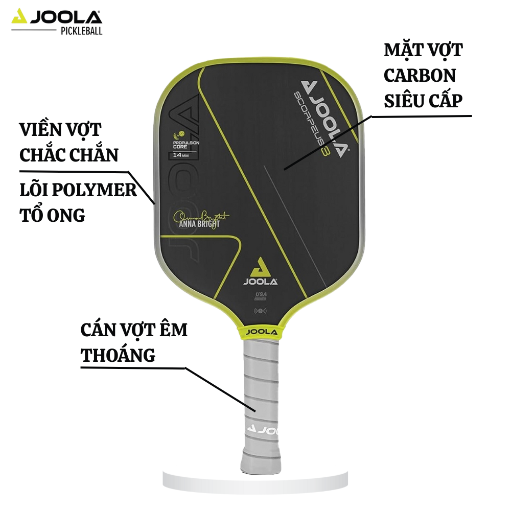 về Vợt Pickleball Joola Anna Bright Scorpeus 3 14mm, công nghệ Charged Carbon Surface, kiểm soát bóng tốt, tạo xoáy, vợt chuyên nghiệpTVQuản trị viênQuản trị viên